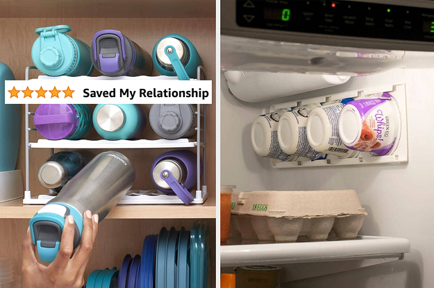 7. A nifty shelving unit made specifically for the unruly collection of water bottles you've accumulated over the years. This will make it much easier to grab the one you want for the day and put it back once you wash it.