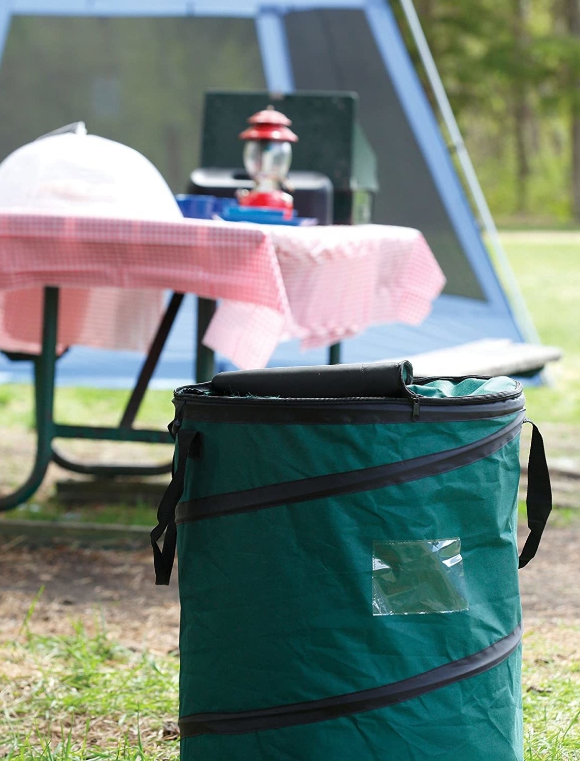 20. A compact pop-up trash can to keep any garbage consolidated and help you and your fellow adventurers leave the park or campsite better than you found it.