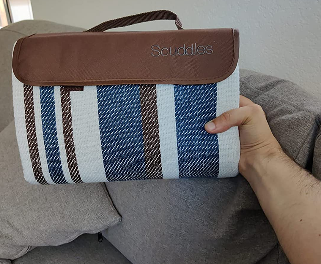 10. A water-resistant outdoor blanket with a carry handle if you've had too many picnics dampened by prickly grass and wet butts. The triple-layered design is comfy, spacious, easy to clean, and even has a built-in zip pocket for stashing small essentials.
