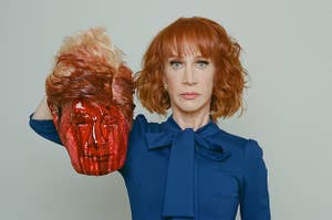 A photo showing the comedian posing with a bloodied prop head of the president was widely denounced Tuesday. Griffin says she went "way too far," but the photographer defended it as a form of artistic expression.