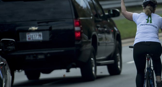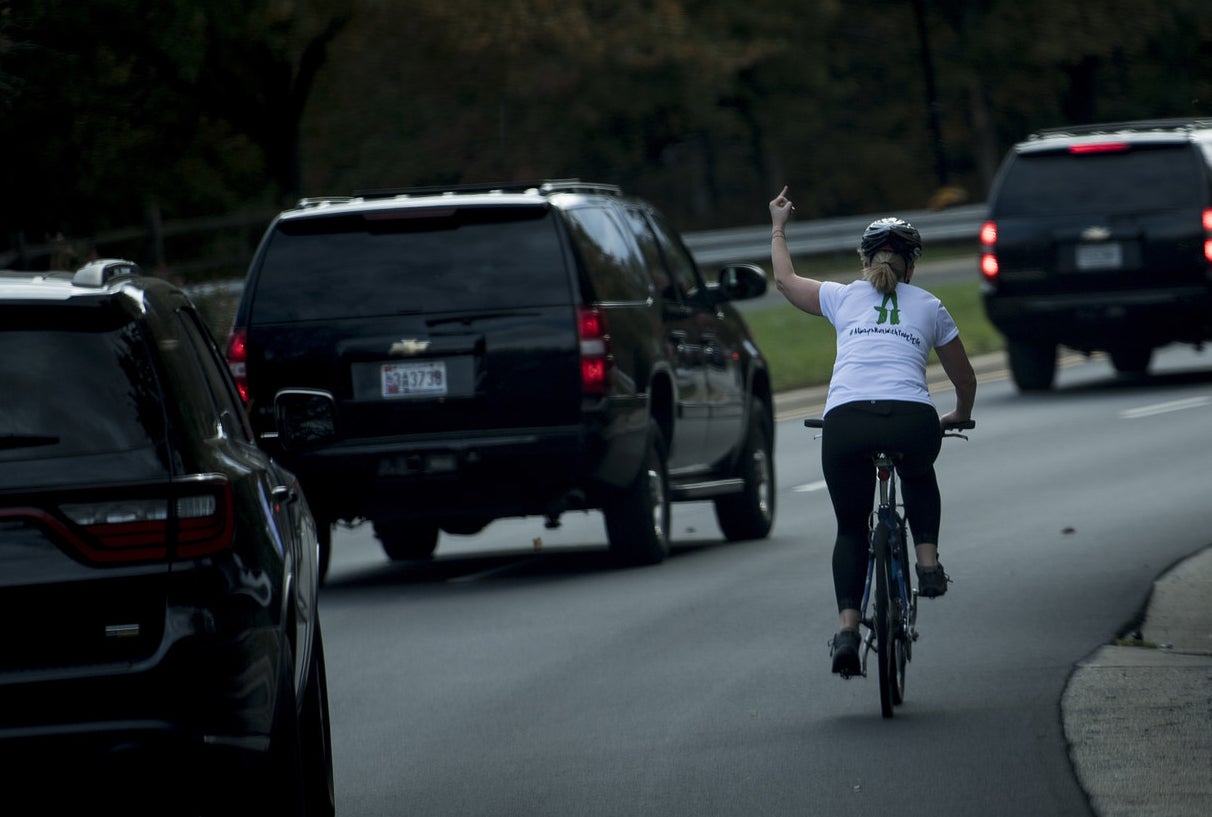 Briskman was riding her bicycle in Sterling, Virginia, on Oct. 28 when Trump passed her in his convoy after leaving his country club.