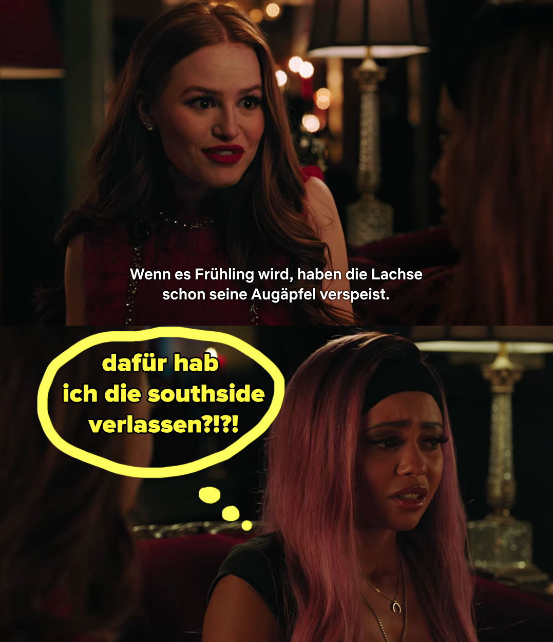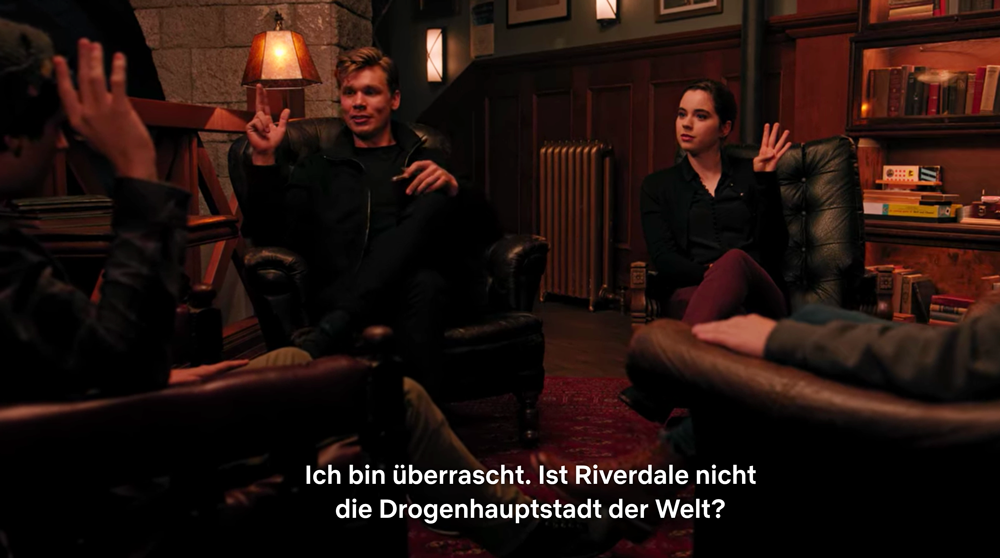 13. Jughead, Betty, Donna und Bret spielen eine Runde „Never Have I Ever“, was mich wieder daran erinnert, dass Jughead und Betty technisch gesehen Gangmitglieder sind. Und Bret fasst Riverdale fantastisch zusammen.