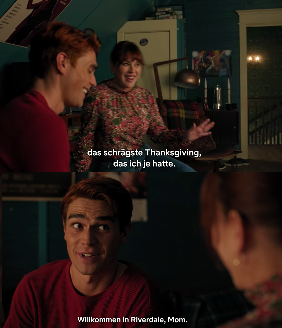 1. In Riverdale ist Thanksgiving, also habt ihr hier eine kurze Aufnahme einer normalen Familie, bevor uns wieder Mord, Bandenkriminalität, dubiose Geschwister, Leichen und besessene Puppen um die Ohren gehauen werden.