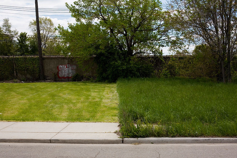 Subtle commentary along Detroit’s Grand River Creative Corridor on the west side of the city. Photograph by Garrett MacLean