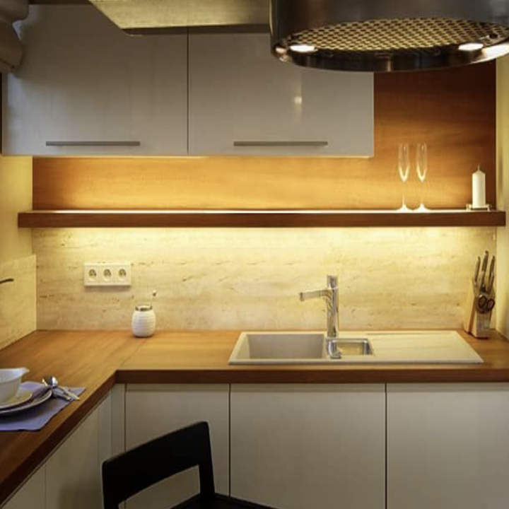 12. Give your kitchen a cosy vibe with these under-cabinet strip lights.