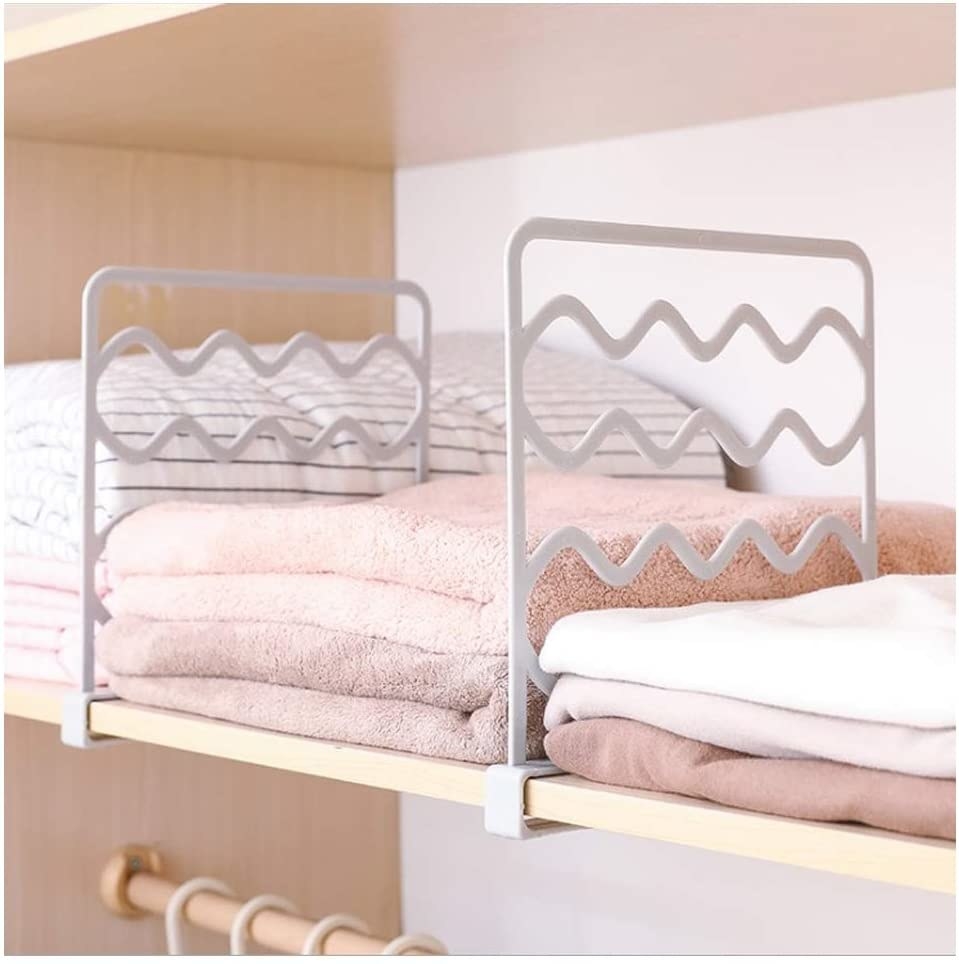 19. These shelf dividers allow you to organise your wardrobe into sections so things won't get piled on top of each other.