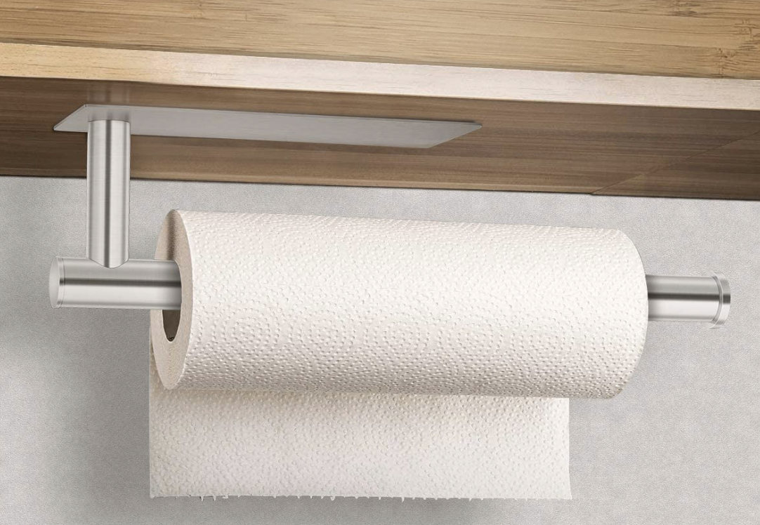 21. This adhesive kitchen roll holder allows you to hang it under your cupboard or shelves so you save space on your surfaces.