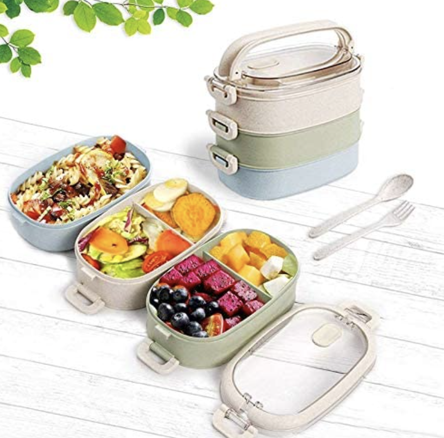 6. Start saving money by taking your own lunches into work with this three-layer bento box. It has multiple sections for different food, and even comes with its own cutlery.