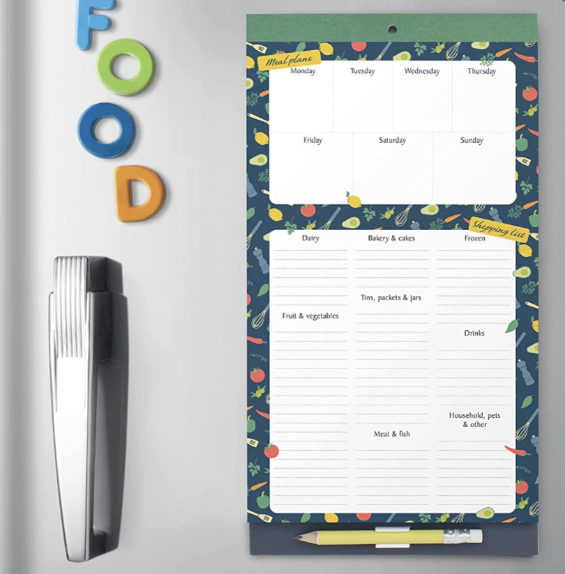 14. This meal planner has a magnetic strip so it can attach to your fridge, and will prepare you for the dreaded question that is "what's for tea?". It also has a tearaway shopping list.