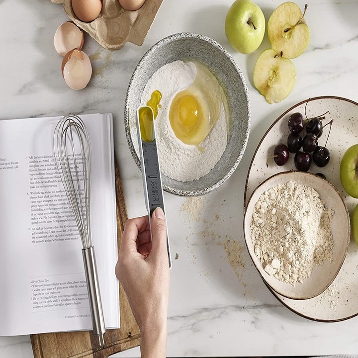 1. This adjustable measuring spoon is suitable for both wet and dry ingredients, and will save you from having multiple spoons taking up space.