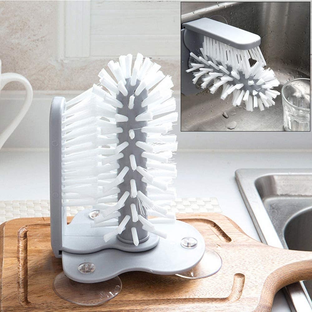 14. This glass-cleaning brush attaches to your sink via suction cup and will make it easier to clean both the inside and outside of your glasses.