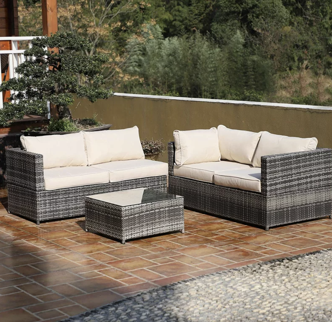 3. This outdoor seating set is an absolute steal, with two loveseats and a coffee table at 44% off!