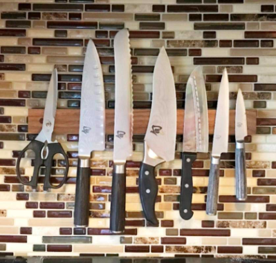 30. A gorgeous magnetic knife rack that has a wood surface so you don't have to give in to the metallic look.