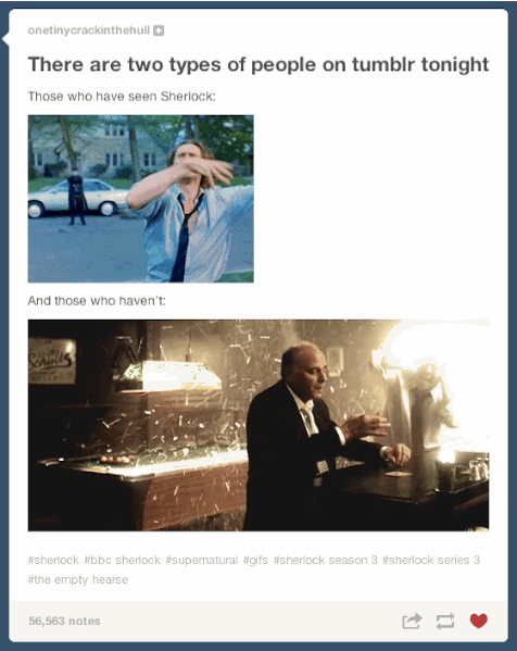 The day before the Sherlock Season 3 premiere, “The Empty Hearse,” Tumblr was already freaking out.