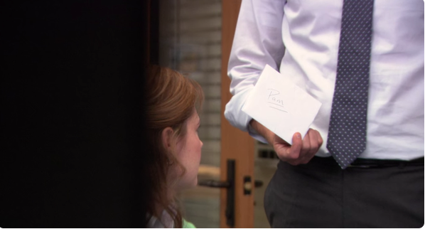 It also includes a letter in which Jim confesses his feelings for Pam, but he decides to remove it at the last minute.