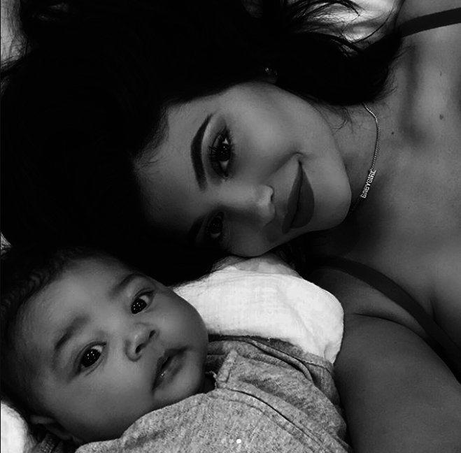 Two days later, Kylie shared this photo, which gave us a glimpse of her new arrival and confirmed her name. Within hours, this photo had generated 17.8 million likes, making it the most popular photo in Instagram's history.
