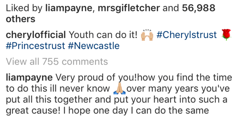 And then later in the day, Liam left this comment under a photo of Cheryl at the centre.