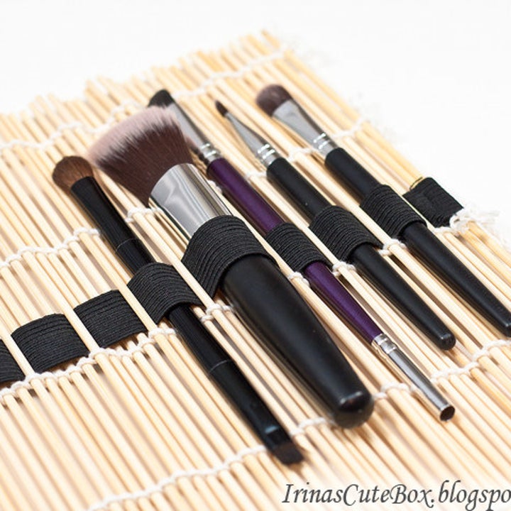 16. Weave an elastic band through a sushi mat if you need to bring your brushes on the go.