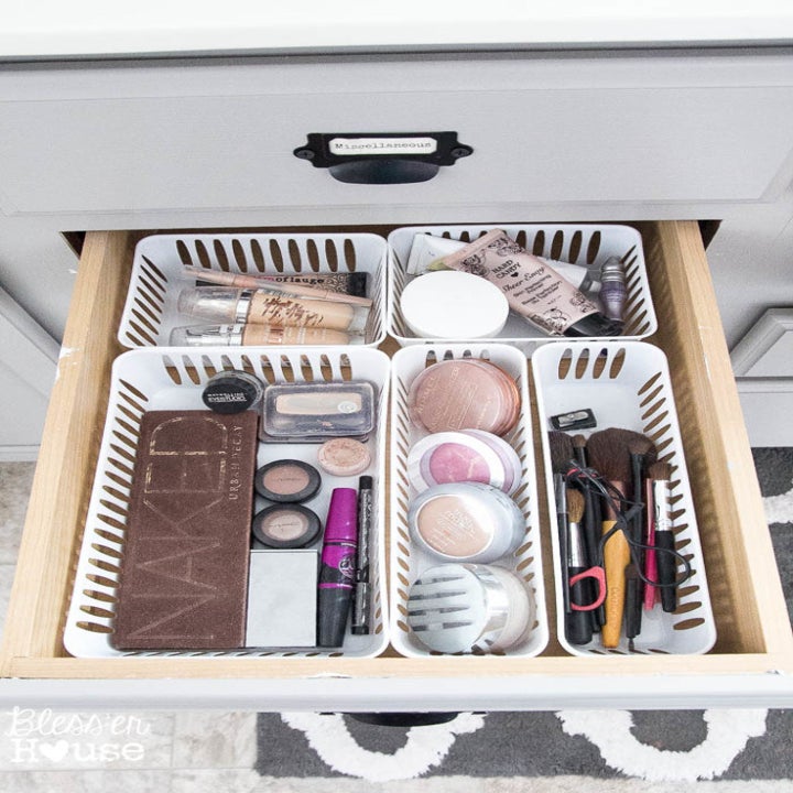 15. Play Tetris with some dollar store baskets so that everything has a place in your drawers.
