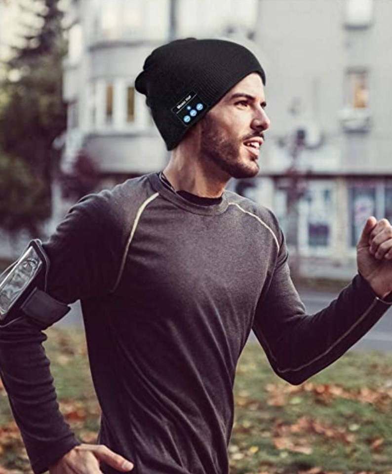 17. If you're running to work, this beanie will keep your head and ears warm, and has built in Bluetooth headphones.