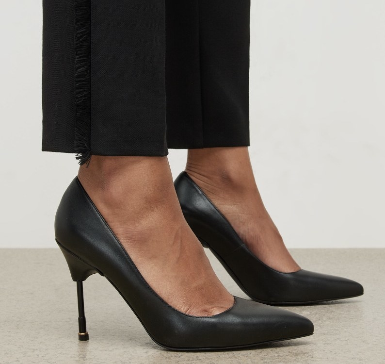 7. The metal heel detail adds a modern update on these classic leather court shoes.
