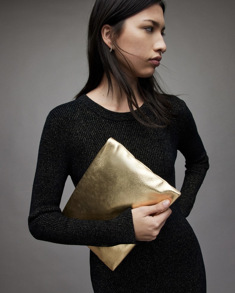 4. While this gold leather clutch bag is a brilliant roomier option that's no less glam.