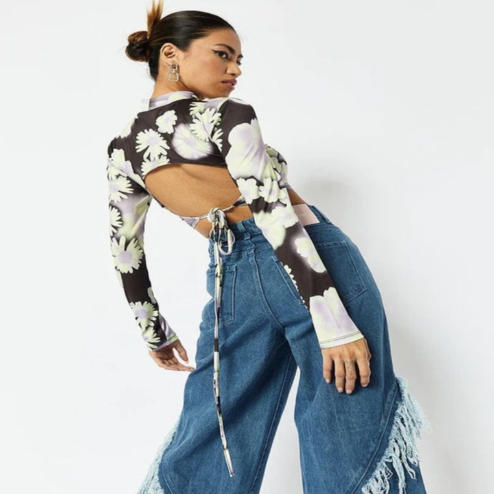 9. This might be the perfect autumn crop top, with its high neck, long sleeves, and psychedelic print (seriously, imagine this with a burnt orange mini skirt and tights).