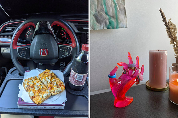 Promising review: "I often times like to enjoy my lunch at work in my car, I just like having my own personal space but I’m always dropping my food on the seats and floor of my car. This product is super nifty and I am guilty of discovering it via TikTok of course, but it’s great!" —Bella W