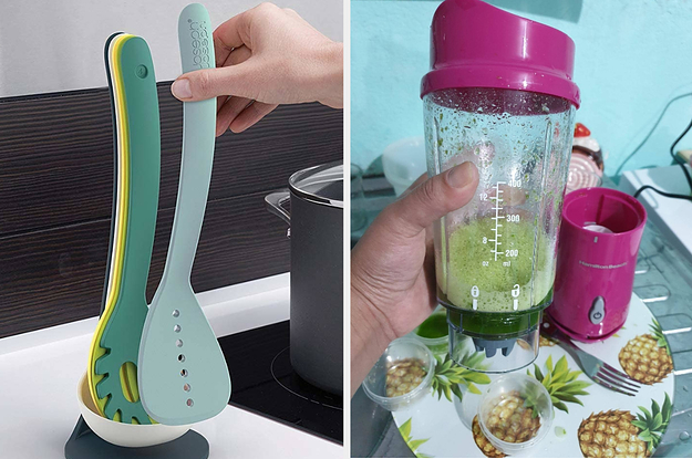 16. Or a "Uni-tool," a show-off of a gadget that functions as slotted spoon, a turner, a solid spoon, a spatula, *and* a cutting tool, so you can go full MasterChef without having to swap out your utensil every five seconds (and wasting PRECIOUS COMPETITION TIME!!).