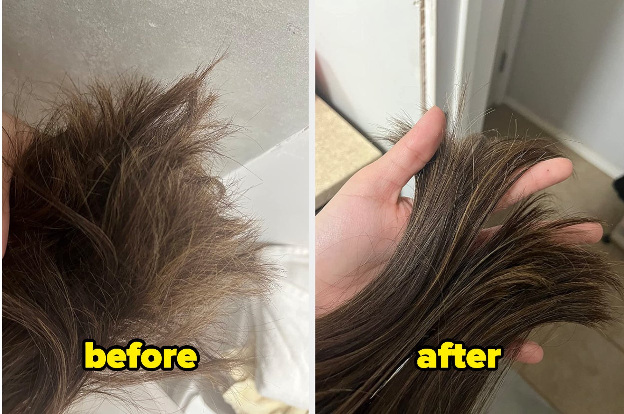 Promising review: "My hair was very dull, no shine at all. I put this on dry hair, waited about 30 minutes (after this first time I’ll do the recommended time), rinsed, and was amazed. Soft, shiny hair after one use. Nothing mends the amount of broken ends I had, but they were less noticeable. I snipped off a couple of inches this morning and I feel human again. No more looking like a plague victim, having people make the sign of the cross and averting their eyes when they see me. This is a miracle in a jar." —nettlehart