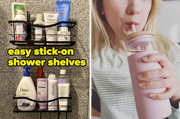 7. A set of two traceless adhesive shelves for your bathroom or kitchen that *don't* require any drilling or complicated installation other than sticking it straight to the wall. A chic and easy home fix?? Ugh, we lazy folks love to see it.