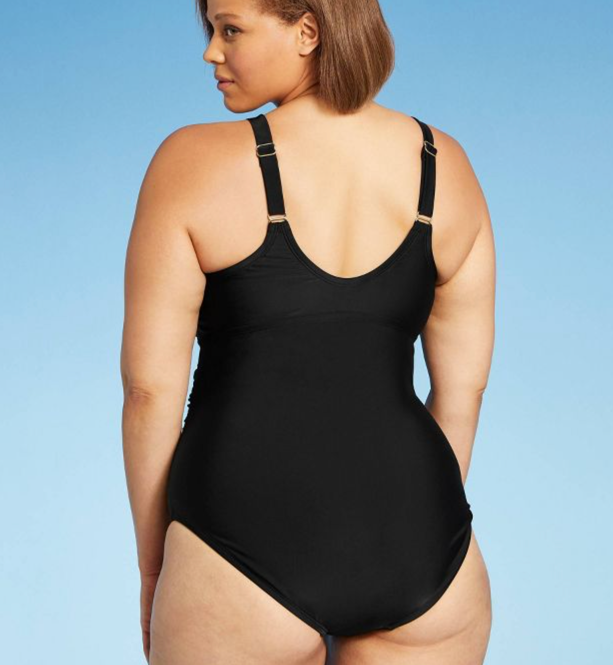 7. A lattice-ruched black one-piece with adjustable multiway straps that *hundreds* of reviewers swear by for managing the feat of being comfortable, stylish, and supportive all at the same damn time.