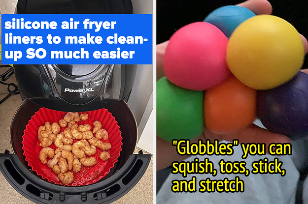 Promising review: "I bought these because I was tired of cleaning the whole air fryer container. These were bought on a whim for both mine and my boyfriend's parents, who each have an air fryer. They work great, keeping all greases and crumbs inside, and make it easier to clean. The only bad thing (and this may just be me) is the ridges/ripples on the bottom of the inside of the liner. When you try to wash it in the sink, don’t put the stream of water right on those unless you want to take a small bath. Other than that, these are fantastic. My boyfriend also says that it seems to make everything crispier, and we love that." —Jordan Hixson