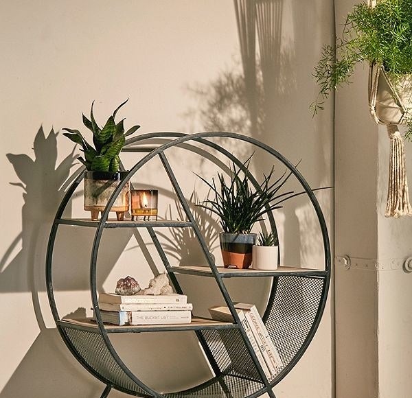 4. A circular metal shelf for achieving a seemingly high-end aesthetic on a well-rounded budget.