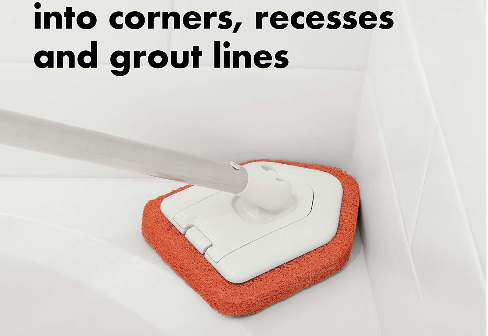 9. An extendable tub and tile scrubber with a pivoting head that'll get every nook and cranny squeaky clean without making you get down and gritty. Translation: you just reach and scrub. That's it.