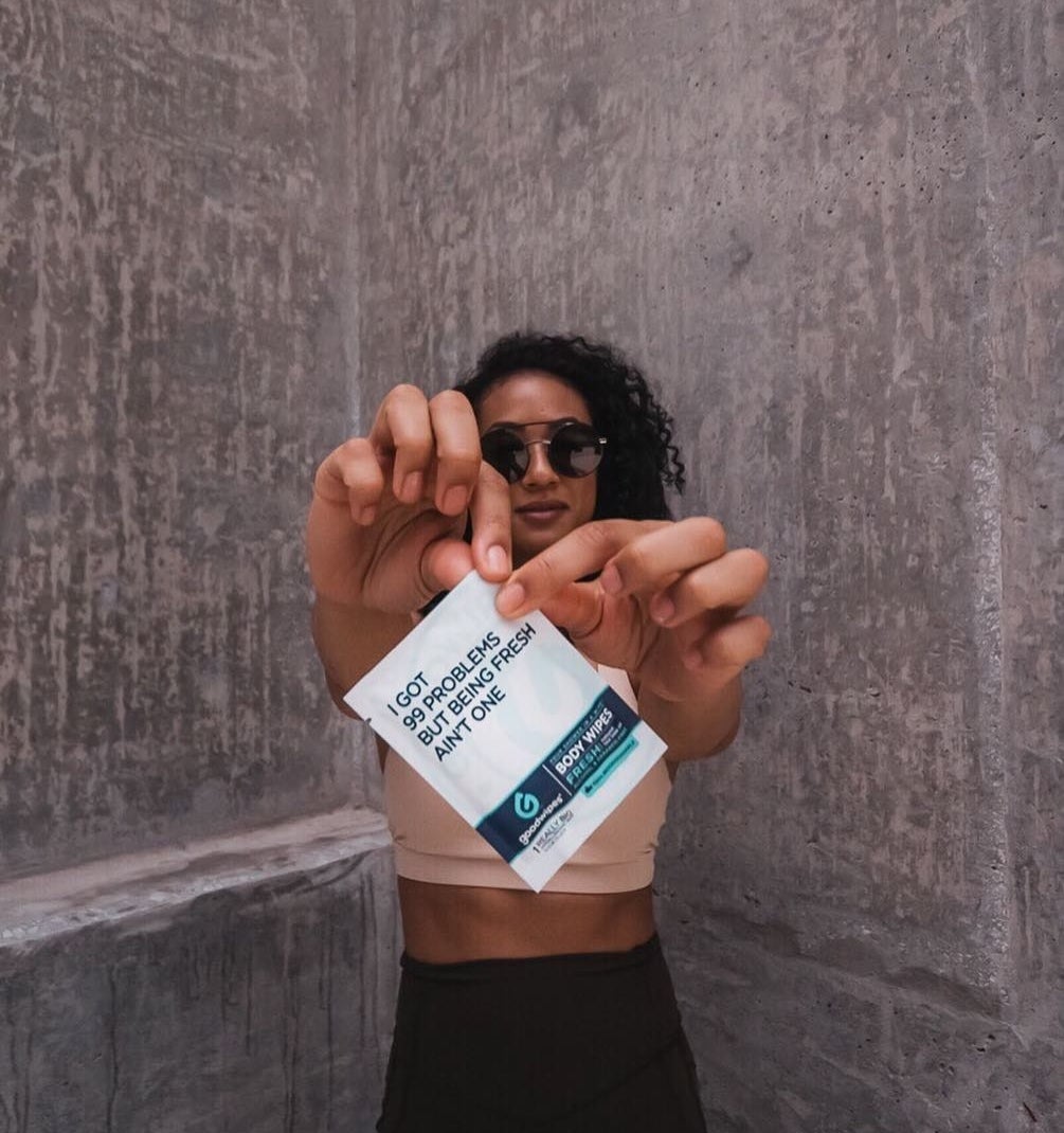 11. Cleanse your skin post-workout (or if it's just impossibly hot outside) to avoid body acne even if your day is busy, busy, busy. A few swipes with Goodwipes hygiene wipes will kill sweat-caused bacteria to keep backne away for GOOD.