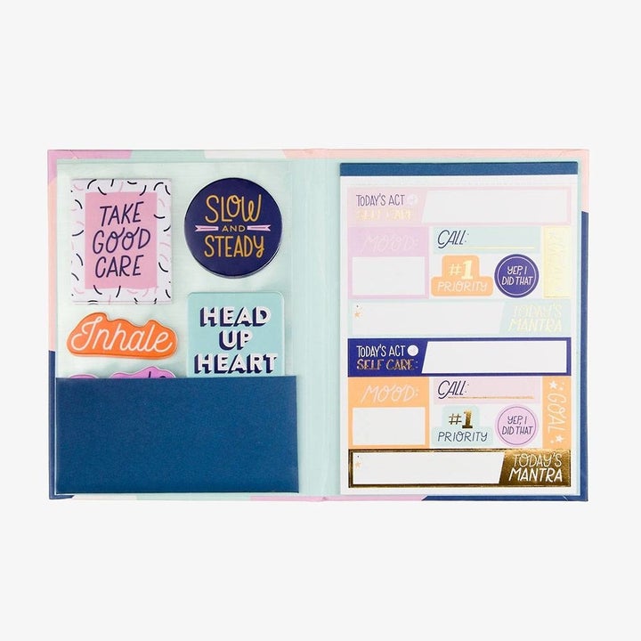 29. A motivating sticker book, because this'll help you make sense of your huge to-do list in a way that feels much more approachable. It even comes with little reminders to take a breath and make time for self-care — important when office hours don't feel set!