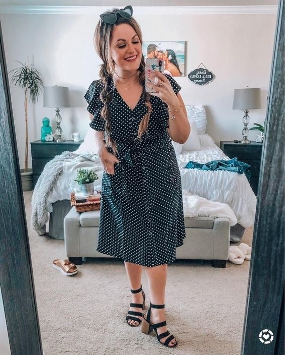 35. A polka-dot button-down dress so you can come PREPARED. Why, you ask? It has deep pockets — buffet, you've been warned.