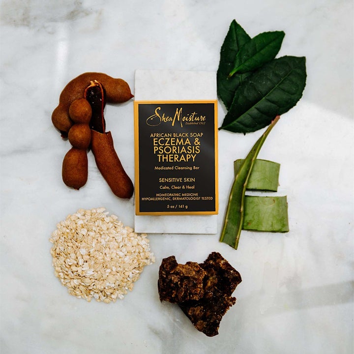 5.A Shea Moisture black soap bar for clearing up eczema and psoriasis breakouts before you have time to scratch. Its blend of aloe, tea tree oil, and soothing oats not only calms irritated skin (hello, deep moisture), but also effectively treats acne! Is there anything this can't do? NO.
