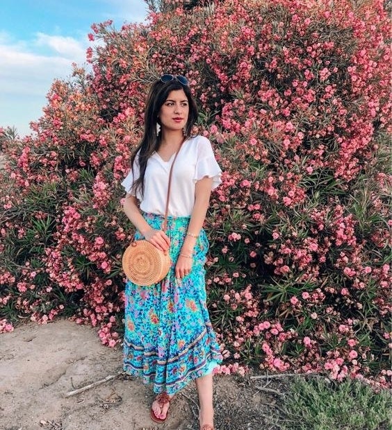 7. A bohemian maxi skirt with POCKETS so you can dress up your tops in a flash without the need for smothering denim. Humidity isn't nearly as awful when in a lightweight skirt.