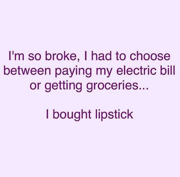 But one should never have to pick between two essentials like lipstick and electricity.
