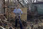 Quinn Warwick, 26, an accounting student at WSU and an AmeriCorps urban safety project member, removes branches from a fallen tree in the back of an abandoned home in Detroit. Associated Press