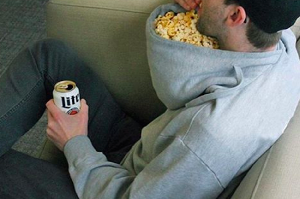 17. And last, but certainly not least, the indomitable soul who hacked a sweatshirt into his own personal popcorn bowl.