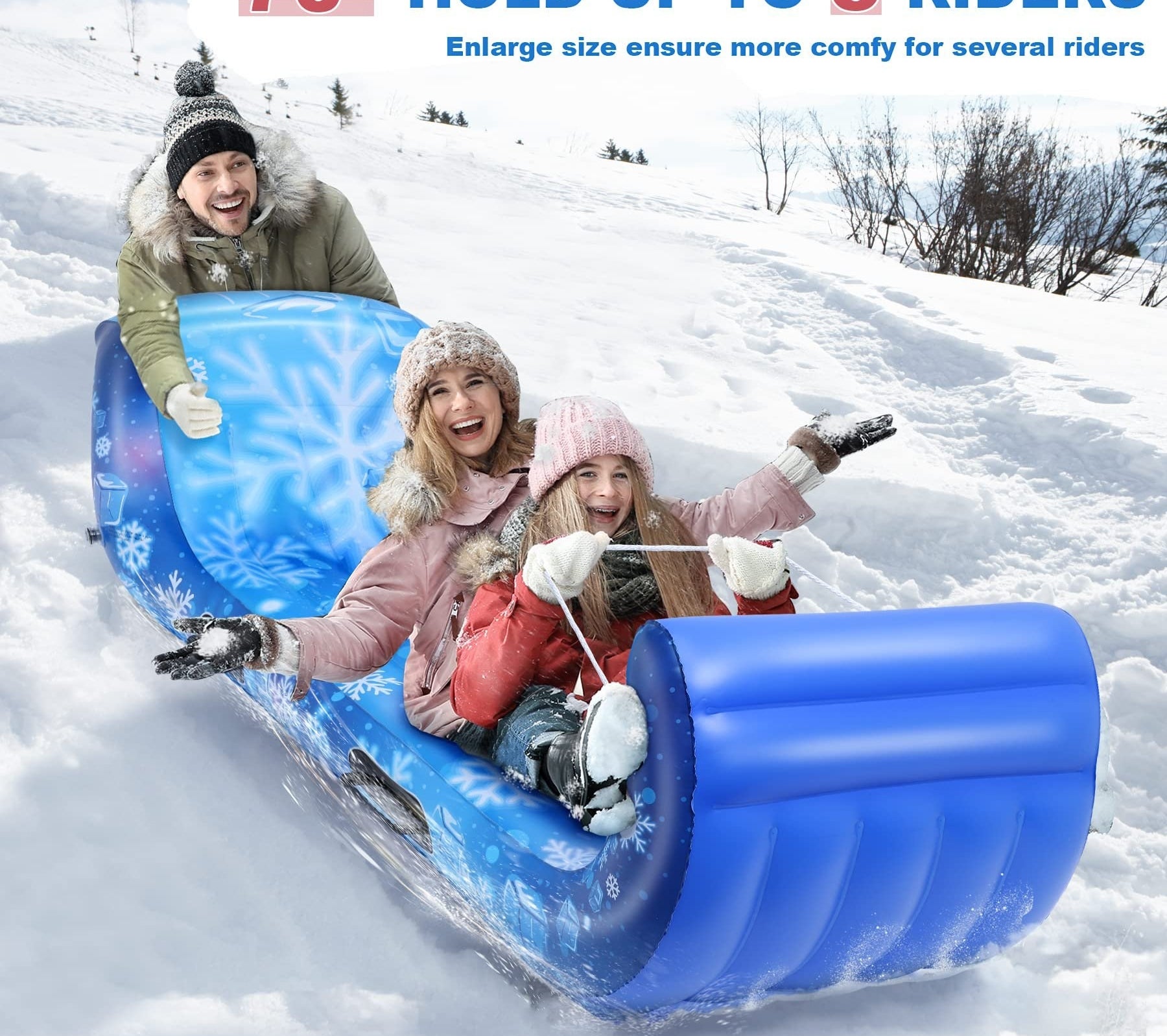 23. A giant snow sled that's 70'' of funnn!! You and your kids will be looking like the cast of Frozen in this enormous sled that can fit five passengers.