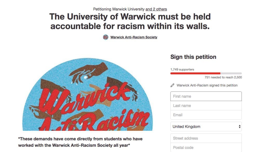 “The way in which universities are structured – from the curriculum that’s provided for students, to the way faculties view students as commodities rather than human beings – is symptomatic of the crude forms of racial bigotry we’re seeing displayed in the wider issues that Warwick students are talking about,” Elliot-Cooper said.