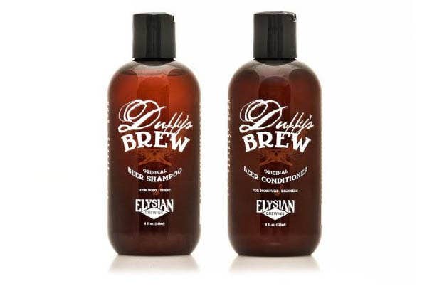 Now you can reek of alcohol from the night before, shower the next morning, feel great, and STILL smell like beer with Duffy's Brew Beer Shampoo & Beer Conditioner . The new shampoo & conditioner is 100% vegan, contains healing botanical extracts such as Acai Berry, Jojoba, Aloe Leaf & Sunflower Seed, and is made with REAL beer!