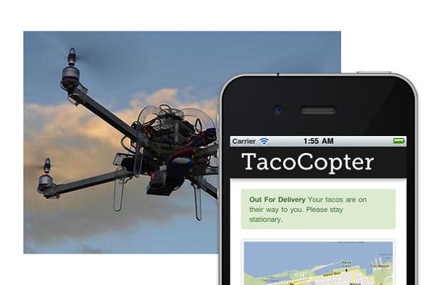 A futuristic concept for food delivery has surfaced, as The TacoCopter will have not only foodies, but techies excited about the possibilities. A world where you can order tacos from your phone and have an unmanned drone fly it over to your GPS-marked location is a world we should all want to live in. The Bay-Area based TacoCopter site cites that the tacos could be ordered through smartphones, so it is probable that an app would be created for easy ordering.