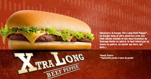 Buzz·Posted on Oct 14, 2010XtraLong Burger to Rival Carl's Jr. Footlong CheeseburgerLooks like Quick, a Belgian and French chain of hamburger fast food restaurants, is jumping on the train of three-pattied-burger.by foodbeastBuzzFeed ContributorFacebookPinterestTwitterMailLink