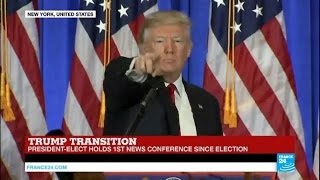 Cette conférence de presse, la première du nouveau président des États-Unis s'est tenue le 11 janvier dans un climat extrêmement tendu. Quelques heures avant, CNN avait publié un article résumant un rapport sur les potentiels liens explosifs entre Trump et la Russie.