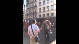 «On était bien évidemment choqués à L'Obs d'entendre de tels slogans sous nos fenêtres. Je suis alors descendu voir trois CRS pour leur demander ce qu'ils attendaient pour interpeller Pierre Cassen. Ils me répondent d'aller voir le commissaire, qui surveille la manifestation dans un coin de la place. Je me dirige vers lui, mais il est au téléphone. J'attends 5/10 minutes qu'il finisse sa conversation, puis je me présente et lui demande si la manifestation est autorisée.